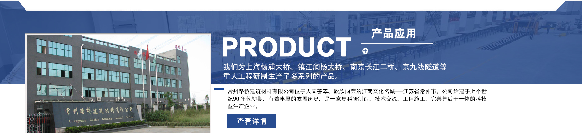 常州路橋建筑材料有限公司位于人文薈萃、欣欣向榮的江南文化名城----江蘇省常州市。公司始建于上個世紀(jì)90 年代初期,有著豐厚的發(fā)展歷史,是一家集科研制造、技術(shù)交流、工程施工、完善售后于一體的科技型生產(chǎn)企業(yè)。